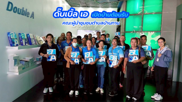 ดั๊บเบิ้ล เอ (Double A) เปิดบ้านต้อนรับคณะผู้นำชุมชนตำบลบ้านทาม อำเภอศรีมหาโพธิ จังหวัดปราจีนบุรี เข้าเยี่ยมชมกระบวนการผลิตเยื่อและกระดาษแบบครบวงจร ภายใต้แนวคิดการพัฒนาอย่างยั่งยืน พร้อมเน้นการดำเนินงานอย่างรับผิดชอบต่อสังคมและสิ่งแวดล้อม ย้ำจุดยืนชัดเจนด้านความยั่งยืน ด้วยการใช้ “ต้นกระดาษ” ซึ่งเป็น “ไม้ปลูก” จากเกษตรกรมาเป็นวัตถุดิบหลัก ซึ่งสามารถช่วยสร้างรายได้ให้กับเกษตรกร ทั้งยังช่วยเพิ่มพื้นที่สีเขียวซึ่งมีส่วนช่วยในการดูดซับก๊าซคาร์บอนไดออกไซด์อีกด้วย