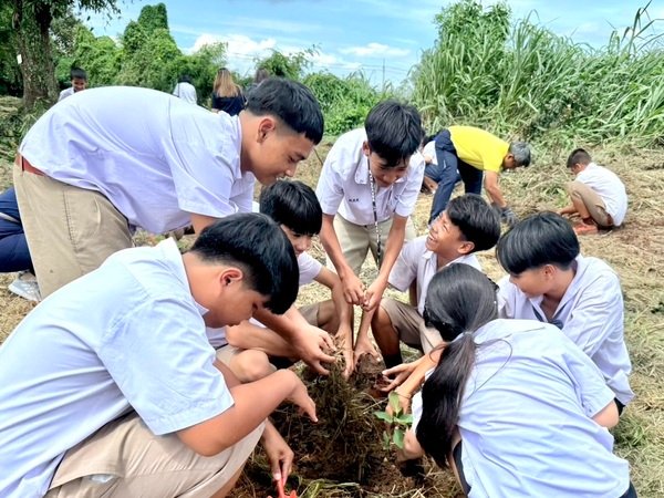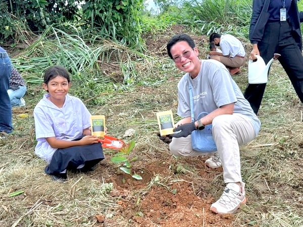 นอกจากนี้ ทุกท่านที่เยี่ยมชมยังได้ร่วมกิจกรรม “ปลูกต้นกระดาษเพื่อทุนการศึกษา” ให้กับน้อง ๆ โรงเรียนบ้านท่าตูม จังหวัดปราจีนบุรี  โดยต้นกล้าทุกต้นที่ปลูกในกิจกรรมจะเติบโตเป็นทุนการศึกษาต่อไปในอนาคต และที่พิเศษคือ ทาง One Bangkok ได้นำปุ๋ยหมักชีวภาพที่ผลิตจากเศษอาหารภายในโครงการ มามอบให้ใช้บำรุงต้นกล้ากระดาษในโครงการดังกล่าว เพื่อให้เติบโตและเป็นสัญลักษณ์ของการจัดการสิ่งเหลือใช้สู่การสร้างอนาคตที่ดีกว่า สอดคล้องกับที่ดั๊บเบิ้ล เอ ให้ความสำคัญเรื่อง "No Waste is Wasted" พร้อมกันนี้ ยังได้ร่วมมอบอุปกรณ์การเรียน และหน้ากากอนามัย Double A Care ใช้สำหรับป้องกันการแพร่ระบาดของเชื้อโรคในช่วงที่สภาพอากาศแปรปรวนให้กับน้อง ๆ เพื่อสุขอนามัยที่ดีอีกด้วย  กิจกรรมในครั้งนี้ ถือเป็นการผสานพลังความร่วมมือระหว่างภาคธุรกิจและชุมชนในการสร้างคุณค่ากลับคืนสู่สังคมอย่างเป็นรูปธรรม